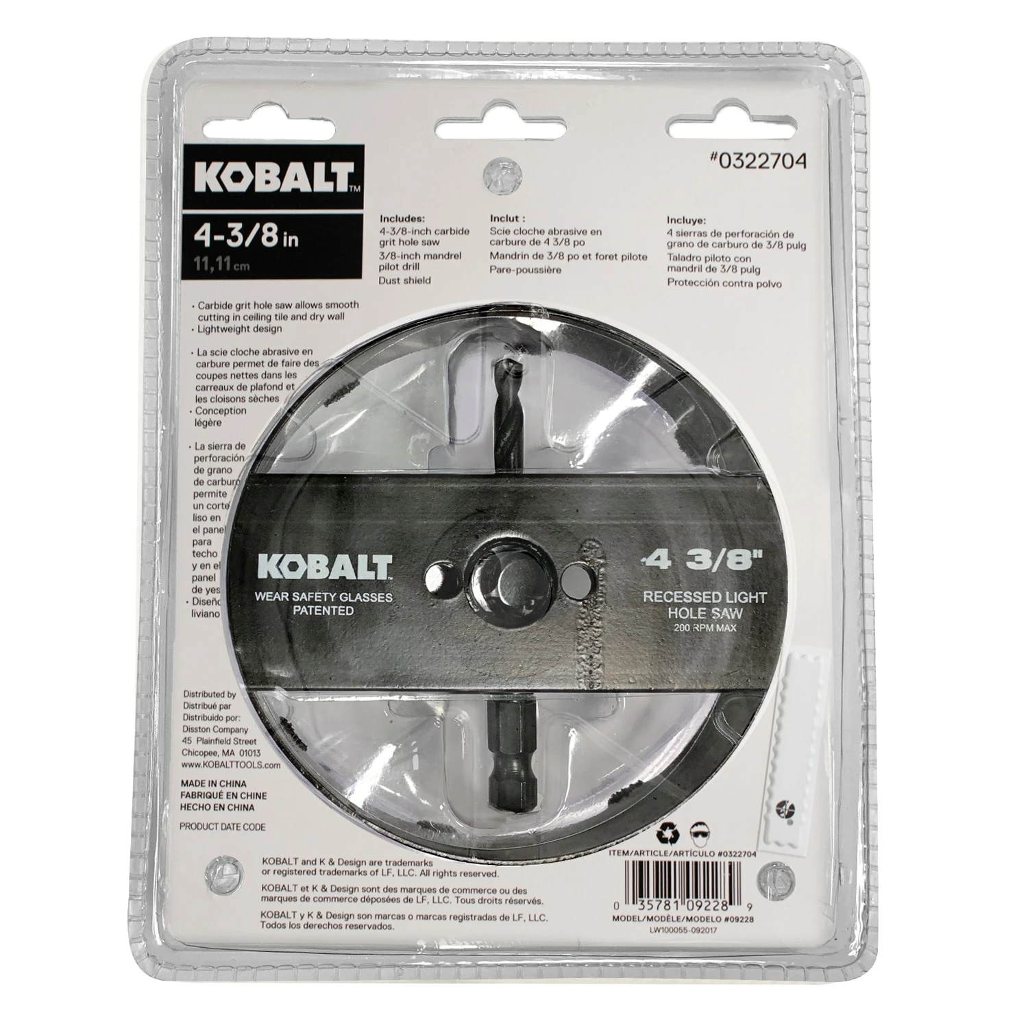 - Includes 4-3/8-in hole saw, mandrel pilot drill and dust shield