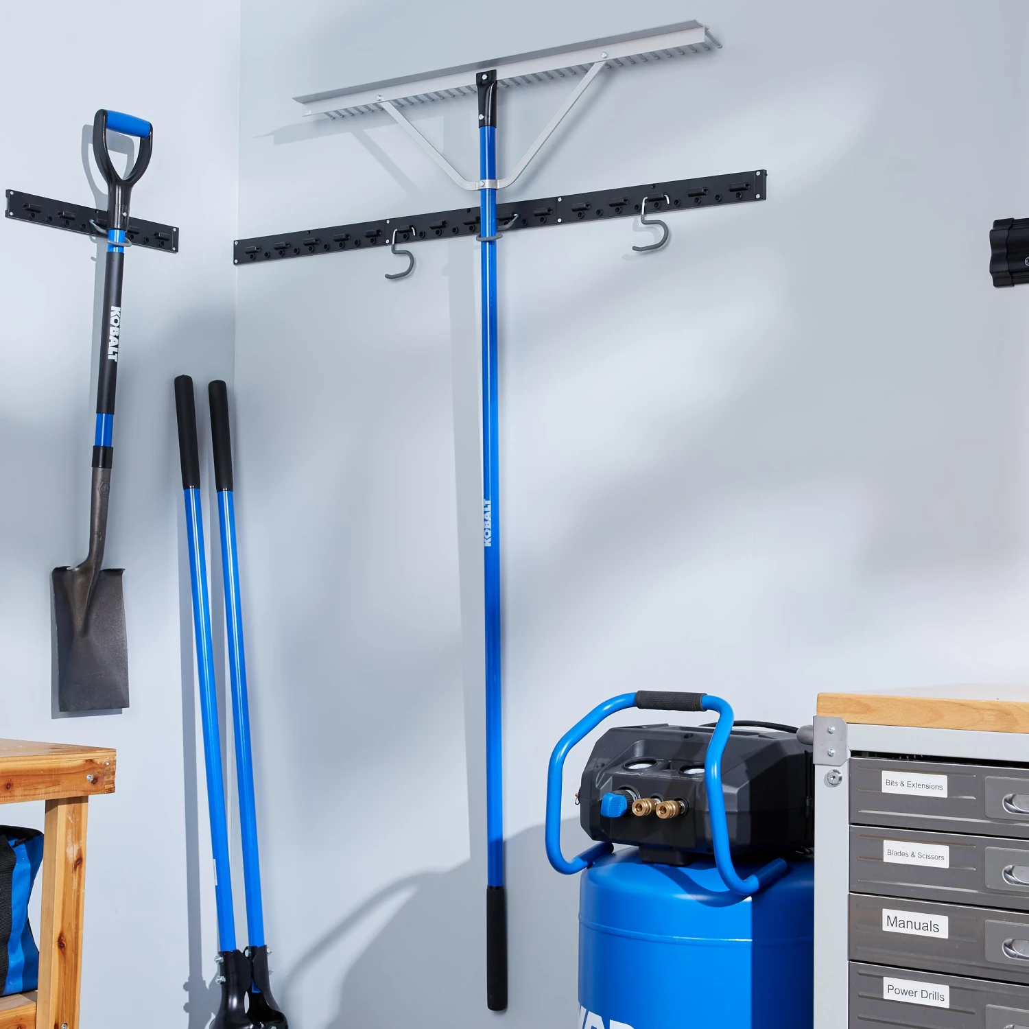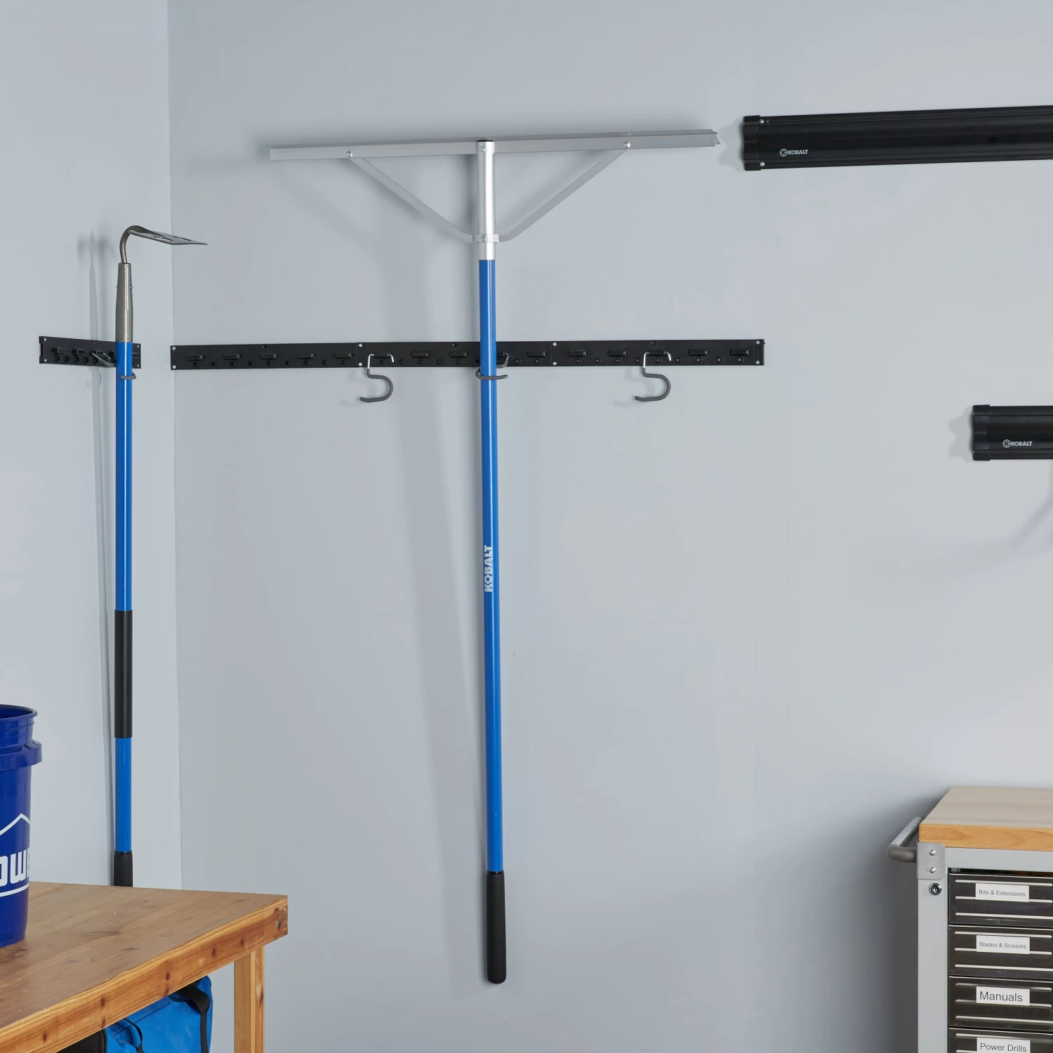 The Kobalt landscape rake is ideal for grading and spreading loose soil, mulch, gravel, and other landscaping materials. This rake will get the job done with a cushioned end grip, long tines and lightweight aluminum handle.